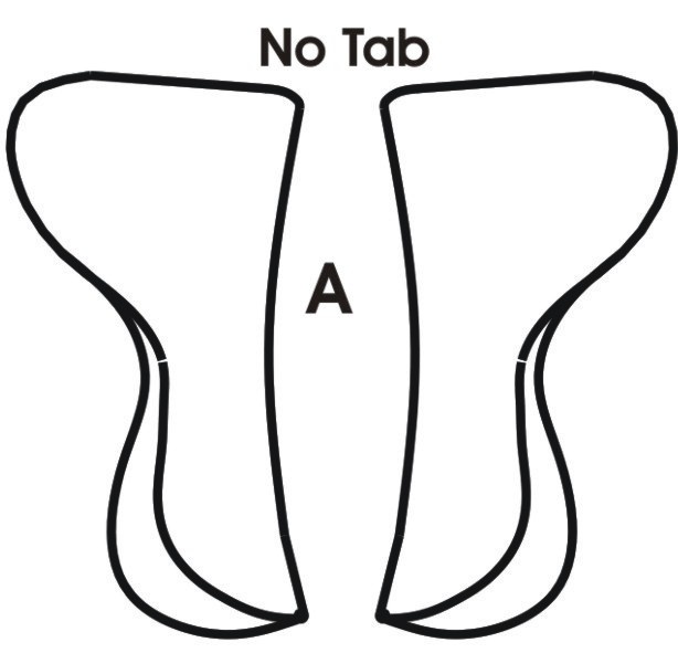 Abbildung A, B und C haben keine Tabs, so dass die Sattelkissen innerhalb der Kammer näher zueinander rücken. Diese Polster sind für Pferde mit mittlerem bis hohem und/oder knochigem Widerrist konzipiert. Dieser Pferdetyp erfordert eine bis zum Fixpunkt der Polster reichende Unterstützung für die seitliche Stabilität des Sattels.